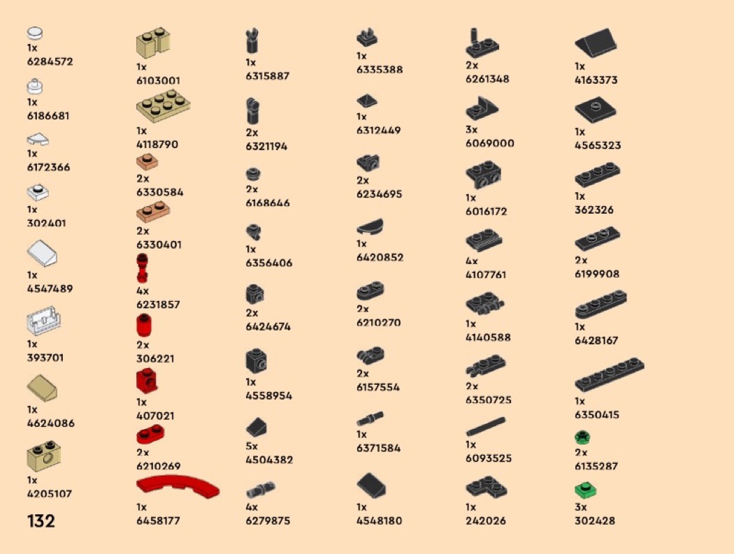 This set has 376 pieces and 0 minifigs. The LEGO Instructions booklet has a total of 136 page.