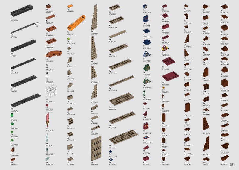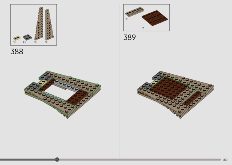 This set has 2387 pieces and 0 minifigs. The LEGO Instructions booklet has a total of 384 page.