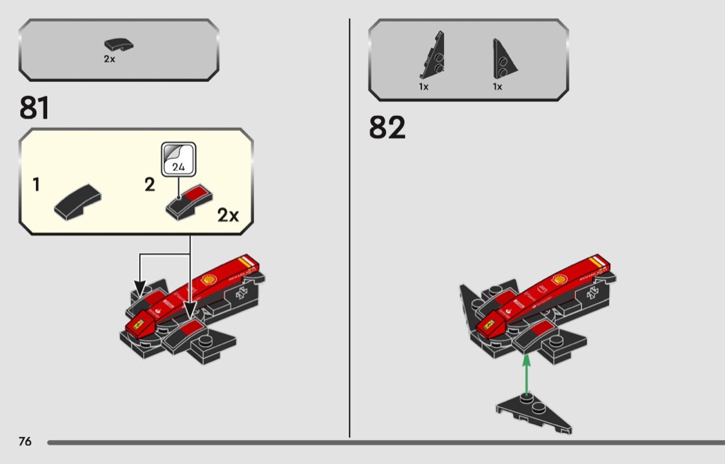 Instructions for set 77242-1 Ferrari SF-24 F1 Race Car which was released in 2025